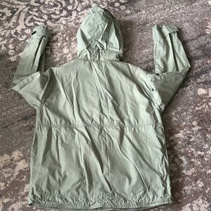 Lightweight sage jacket with hood. Ideal for breezy days.