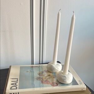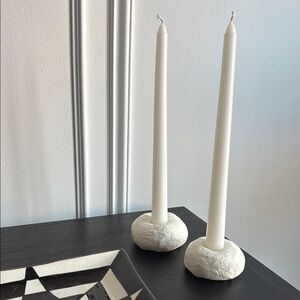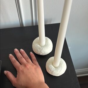 Handmade Clay Minimalist Wabu Sabi White Candle Holders with Candle Sticks