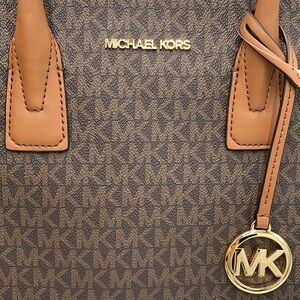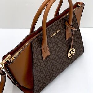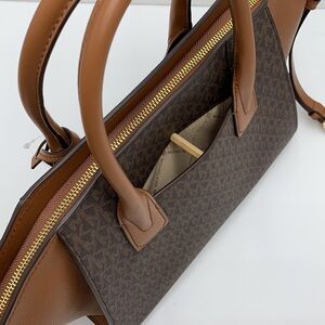 MICHAEL KORS AVRIL LARGE TOP ZIP SATCHEL BROWN/LUGGAGE SIGNATURE COLOR