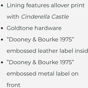 Brand new with Tags Disney WDW Castle Dooney & Bourke. Chic crossbody bag with a gold castle motif. Sleek black finish. Ideal for stylish outings.
