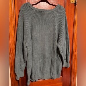 EXPRESS women’s teal green crew neck knitted sweater. Color looks grey in some photos but it is a muted green. In EXCELLENT condition, small snag that is barely noticeable is pictured. Size women’s medium and ready for a new home!