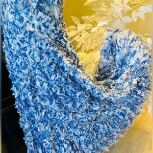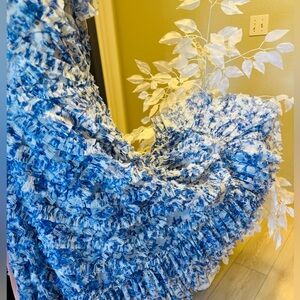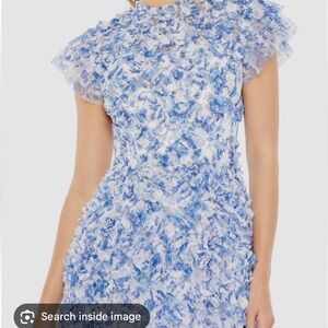 Mac Duggal Blue and White Midi Dress