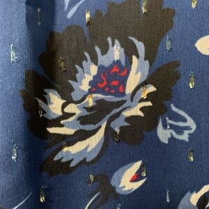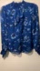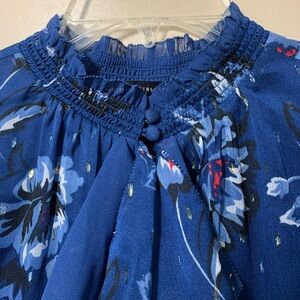 White House Black Market navy blue blouse with floral print and metallic shimmer