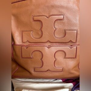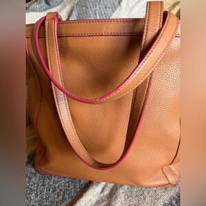 Tory Burch Rare Brown Leather Tote with Pink Accents