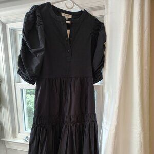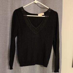 Chic midi skirt with a floral pattern. Black base with gold accents. Ideal for versatile styling.