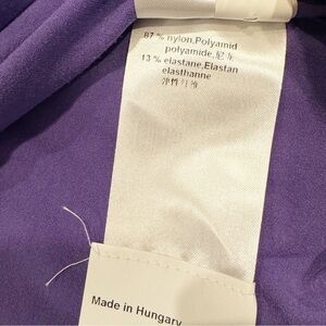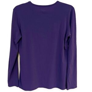 This ultra lightweight basic tee features long sleeves and a scoop neck. It’s made of a polyamide/elastane blend, giving it plenty of stretch. Purple color. Size 5- fits like a small.