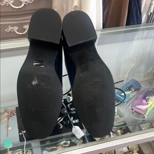 Jeffrey Campbell Shiny Navy Lace-Up Boots