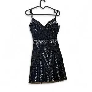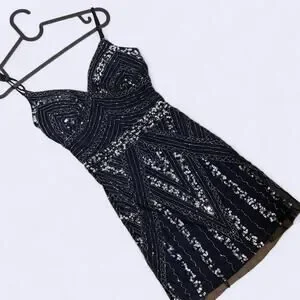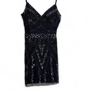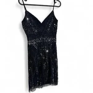 MARINA Black Sequin Mini Dress – Size 2 | Gatsby Glam | Like NEW