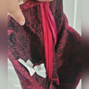 This elegant red floral top and skirt is perfect for any occasion. The intricate design adds a touch of sophistication to your wardrobe.