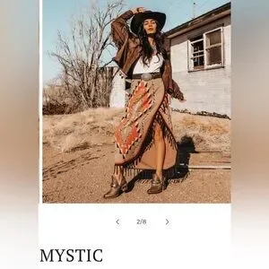 Stunning, booties with v-shaped ankle frame design. The “Mystic” from Freebird in the gorgeous taupe color that is sold out on the Freebird website. All the classic details you love from Freebird: distress shading, chains, southwestern conches and coins, straps, and impressive stacked leather heel profile design. These boots will be your go to for all your western, prairie, flowing boho outfits! Very nice preowned condition. The only sign of wear are some tiny marks at the very edge of the toe by the sole and the Freebird logo is worn off the sole.
