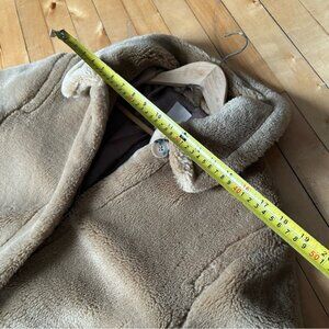 H&M Sz M Tan Brown Long Relaxed Button Front Faux Fur Coat Add a cozy, chic layer to your wardrobe with the H&M Sz M Tan Brown Long Relaxed Button Front Faux Fur Coat. This stylish coat is crafted from soft, plush faux fur fabric that offers exceptional warmth and comfort. The warm tan brown color adds a timeless, neutral touch, making it easy to pair with both casual and more polished looks. Featuring a relaxed fit and long length, it provides a flattering, oversized silhouette that’s perfect for layering over sweaters, dresses, or jeans. The button-front closure adds a classic, refined detail, while the teddy texture elevates the coat’s appeal, making it an ideal choice for colder months. Whether you’re running errands or heading out for a casual outing, the H&M Sz M Teddy Coat brings effortless style and warmth to your everyday wear. Key Features: • Soft, plush faux fur fabric for a cozy feel • Warm tan brown color for versatile styling • Long, relaxed fit for a comfortable and chic silhouette • Button front closure for a classic touch • Size M, offering a relaxed yet flattering fit • Perfect for layering over casual or semi-formal outfits Great pre owned condition ( might have had some added cuffs at the sleeves cuffs because there is stitches throughout last pic) Tags : teddy, minimalist, relaxed, trendy, neutral
