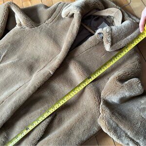 H&M Sz M Tan Brown Long Relaxed Button Front Faux Fur Coat