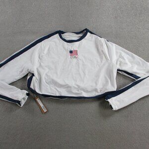 SKIMS Team USA Olympics Top Womens XL White Blue Long Sleeve Cropped Tee NWT NEW
