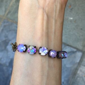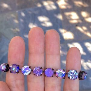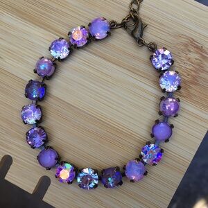 Amethyst, Violet, + iridescent Purple Opal Antique Brass Crystal Tennis Bracelet