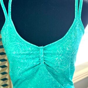 Sporty Mountain Hardwear dress with crisscross straps and built in bra. Swim suit like fabric, sweet print in a jade color. XS fits like a small XS could wear as well. Don’t miss out on this athletic style dress for summer.