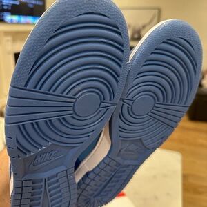 Brand new. Never worn. Vibrant blue Nike sneakers with white accents. Perfect for active kids. Durable and stylish design.