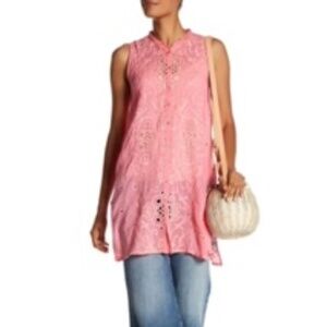 Johnny Was Wirey Vine Georgette Sleeveless Eyelet Tunic Bubblegum Pink