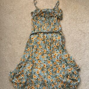 Anthropologie Farm Rio Toucan Tropical Print Maxi Dress Ruffle Hem