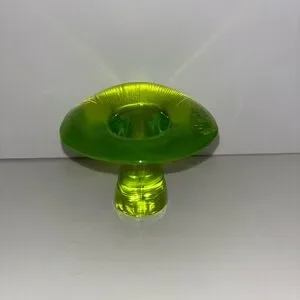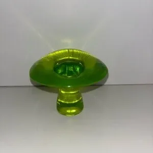 Add a pop of color to your home with this vibrant lime green glass mushroom sculpture. Perfect for art enthusiasts and collectors. Glows under blacklight. 3.25” tall, 4” across. No chips or cracks.