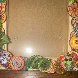 Brighten up your space with this colorful owl-themed picture frame. Perfect for adding a whimsical touch to any room.