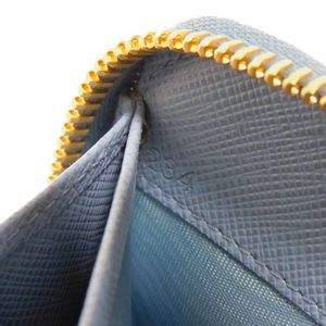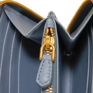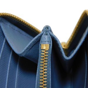 Prada Blue Leather Saffiano Around Wallet Zip