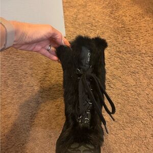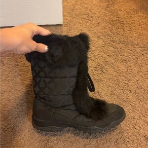 COACH Jennie Rabbit Fur Trim Monogram Snow Boots Black Size 9