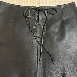 Free People Black Leather Lace Up Mini Skirt Size 8 Edgy Western Festival Rocker