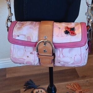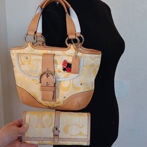 Coach navy blue large bag with neck yellow tassle and keychain