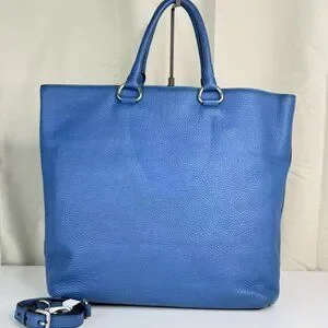 Prada Blue Leathe Convertible Shopper Tote