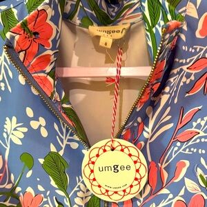 Umgee Blue and Pink Floral ruffle sleeve half zip Dress