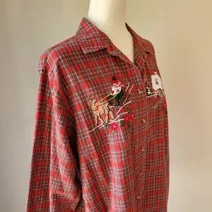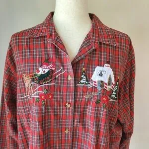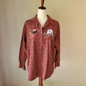 Vintage Christmas Plaid Casey & Max XL Holiday Red Festive Button Down Top