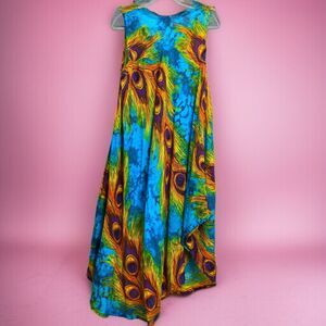 Jessica Taylor Flowy Asymetrical Sundress OS Blue Boho Breezy Layers Festival