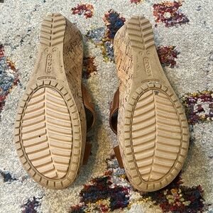 CROCS Women's Tan Leather Upper Wedge Sandals Size 8