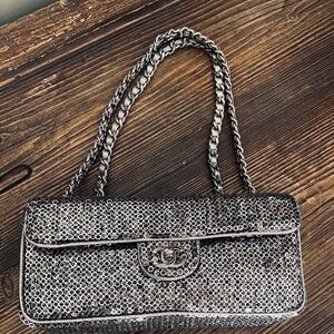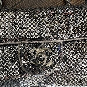 AUTHENTIC-Vintage Chanel Sequined Classic Flap Handbag ( Color: Black/Silver)