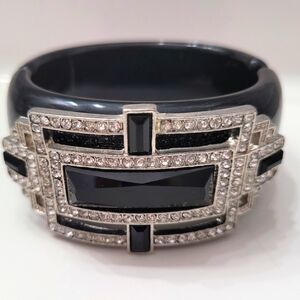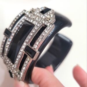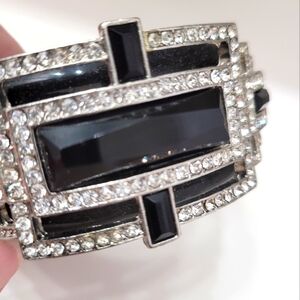 Statement Black & Silver Rhinestone Cuff Bracelet Art Deco Glam