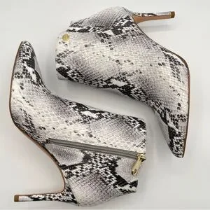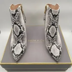 LOUISE ET CIE SID Black White Snake POINTY TOE BOOTS Womens Size 7