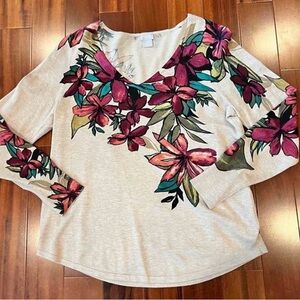 🌺Chico’s tropical floral lightweight pullover sweater, V-neck, long sleeves M