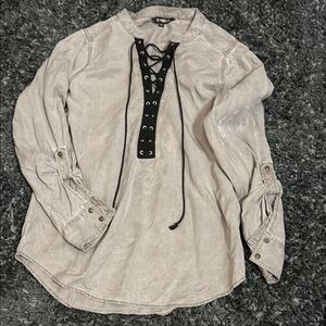 Chic red blouse with floral design. Features ruched details and scalloped trim. Perfect for casual outings.