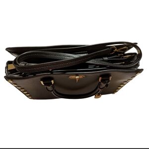 Michael Kors Studded Leather Satchel Handbag Black/Gold One Size