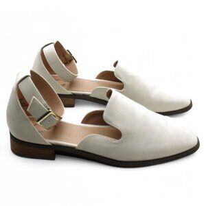 Chic cream loafers with a secure ankle strap. Comfortable and stylish. Ideal for everyday wear.