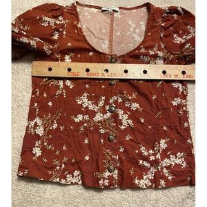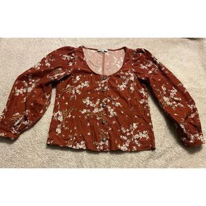 Madewell Top Corduroy Button Front Shirred Sleeve Red Farmstand Bouquet Size S