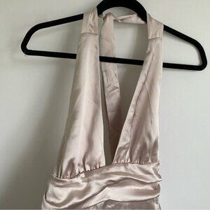 GarageHollySatinPlungeHalterDressinBeigeOffWhiteszMMedium