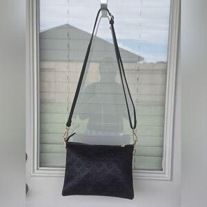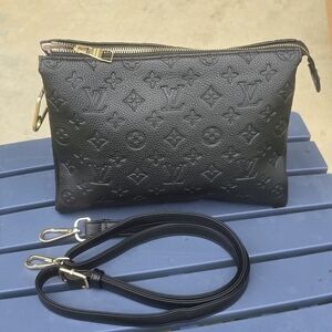Louis Vuitton Black Embossed Clutch Crossbody Bag Leather Detachable Strap