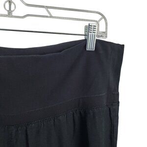 Comfortable and versatile, these black linen-blend pants are designed with a wide leg silhouette and elastic waistband for ease of wear. Suitable for casual or professional settings, they offer a polished yet relaxed look that pairs well with a variety of tops.