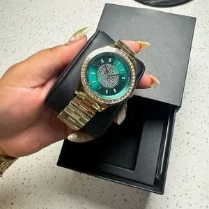 Elevate your style with the JBW Gold and Green Women's Watch. This exquisite timepiece features a luxurious gold band and a captivating green dial, perfect for any occasion.