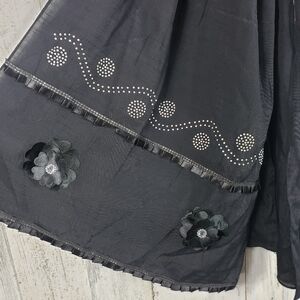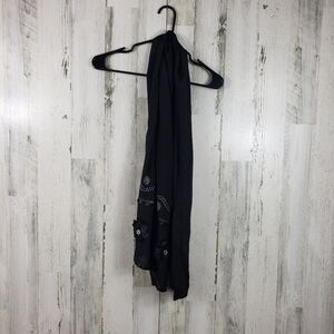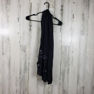 Unbranded black and silver scarf with flowers good pre-owned condition please see photos for more details Measurements are approximate and taken laying flat length 64 inches Width 19 inches a2/J1 n066