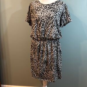 Chic black faux wrap sweater. Features sheer velvet burnout sleeves with a leopard pattern. Perfect for versatile styling.