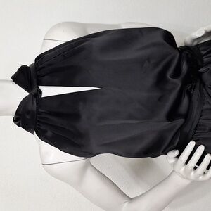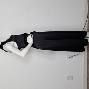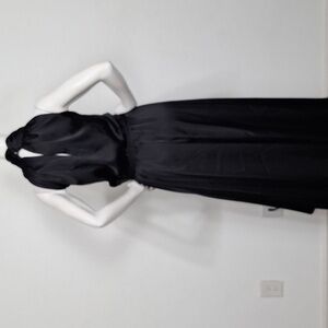Elegant black tea length dress. Halter neckline. Waist tie detail. Perfect for evening wear. ⭐️⭐️⭐️⭐️⭐️