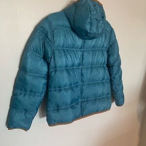 Mountain Force hooded reversible nylon quilted ski jacket orange/blue sz 38/Med