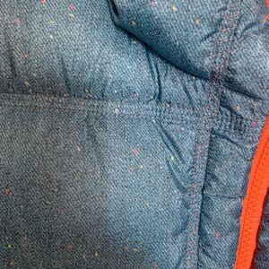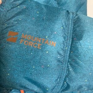 Mountain Force is known for their quality craftsmanship. It is Swiss Engineered and is Swiss size 38/Medium. Size chart in photo. The jacket reverses from bright orange quilted nylon to blue/with colored flecks nylon. I don’t know what they used but it is the SOFTEST ski jacket I have ever felt. There are zippered side pockets on both sides and the zipper glides very easily. Khaki binding around the cuffs and hood. This jacket has no tags but looks brand new. And shows no signs of wear.